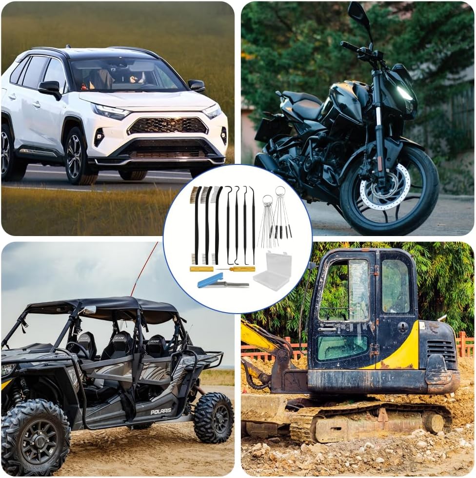 Efficient Deep Cleaning: Precision needles and brushes penetrate deep into carburetor interiors, effectively removing stubborn carbon deposits, oil stains, paint residues. Restores engine optimal performance, reduces fuel waste and extends equipment service life