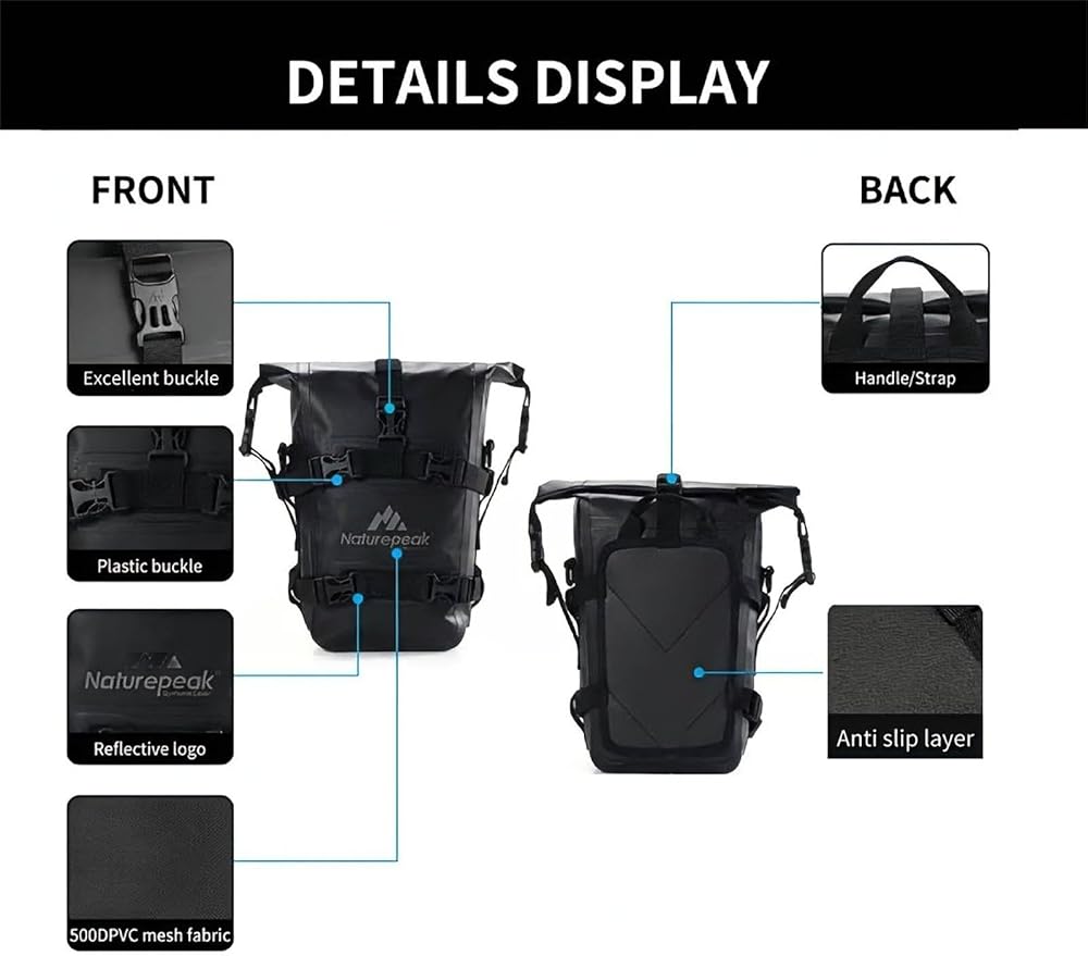 【حماية ضد الماء】مصنوعة من بولي كلوريد الفينيل عالي التحمل 500D مع خياطة سلسة، تضمن هذه الحقيبة بقاء أدواتك وهاتفك وأساسياتك جافة تمامًا في الداخل. إنه الرفيق المثالي المقاوم للماء أثناء هطول الأمطار والممرات الموحلة وجميع رحلاتك المغامرة.