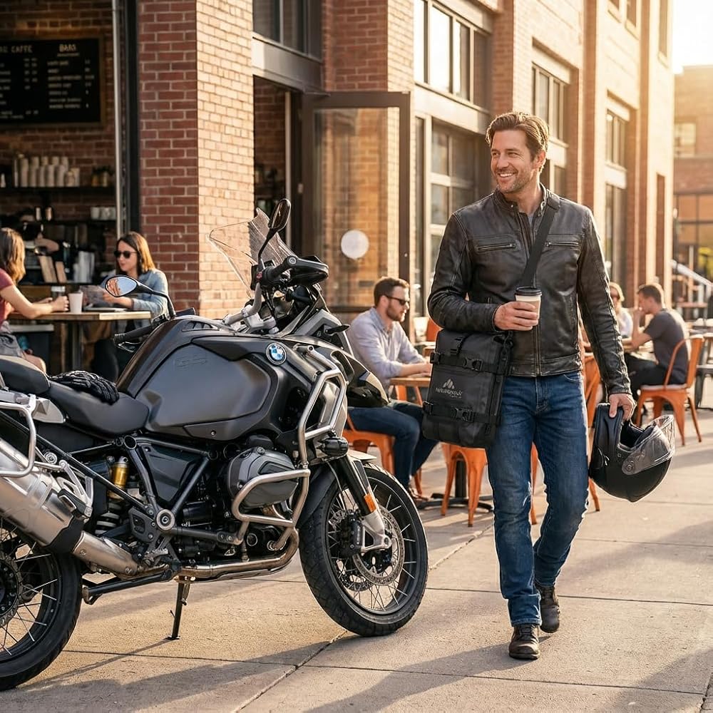 【تصميم مدمج سعة 8 لتر مع وظيفة حمل خارج الدراجة】يوفر مساحة تخزين كبيرة بتصميم أنيق وبسيط (23 × 10 × 35 سم). يعمل حزام الكتف القابل للتعديل والخطاطيف الجانبية على تحويلها إلى حقيبة كروس مريحة، مما يجعلها خفيفة الوزن ومتعددة الاستخدامات سواء داخل الدراجة النارية أو خارجها.