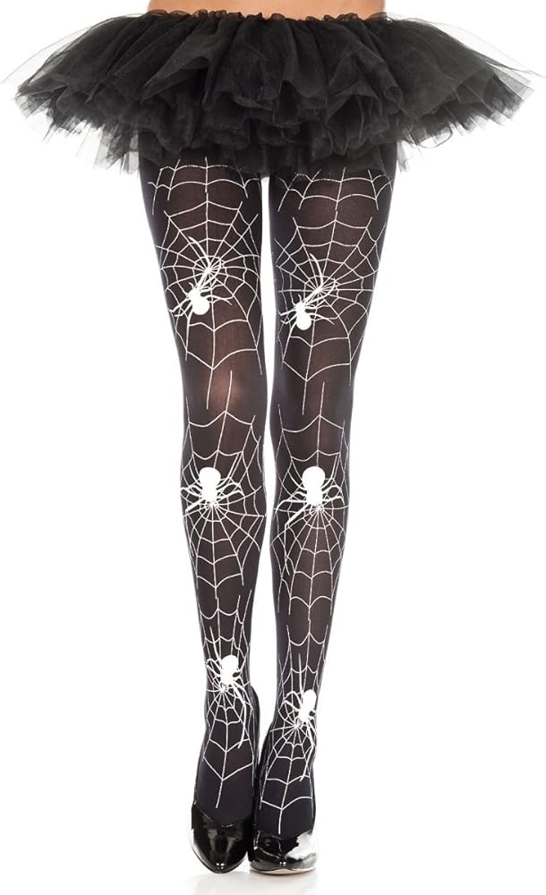 Musiclegs offers innovative fashions great fit and exceptional quality in the costume world We understand the current fashion needs and meet the requirement with our great team of designers Features. Spider And Web Print PantyhoseSpecifications. Color Black White