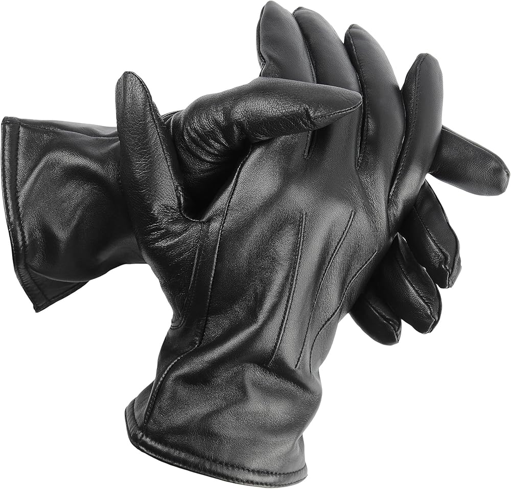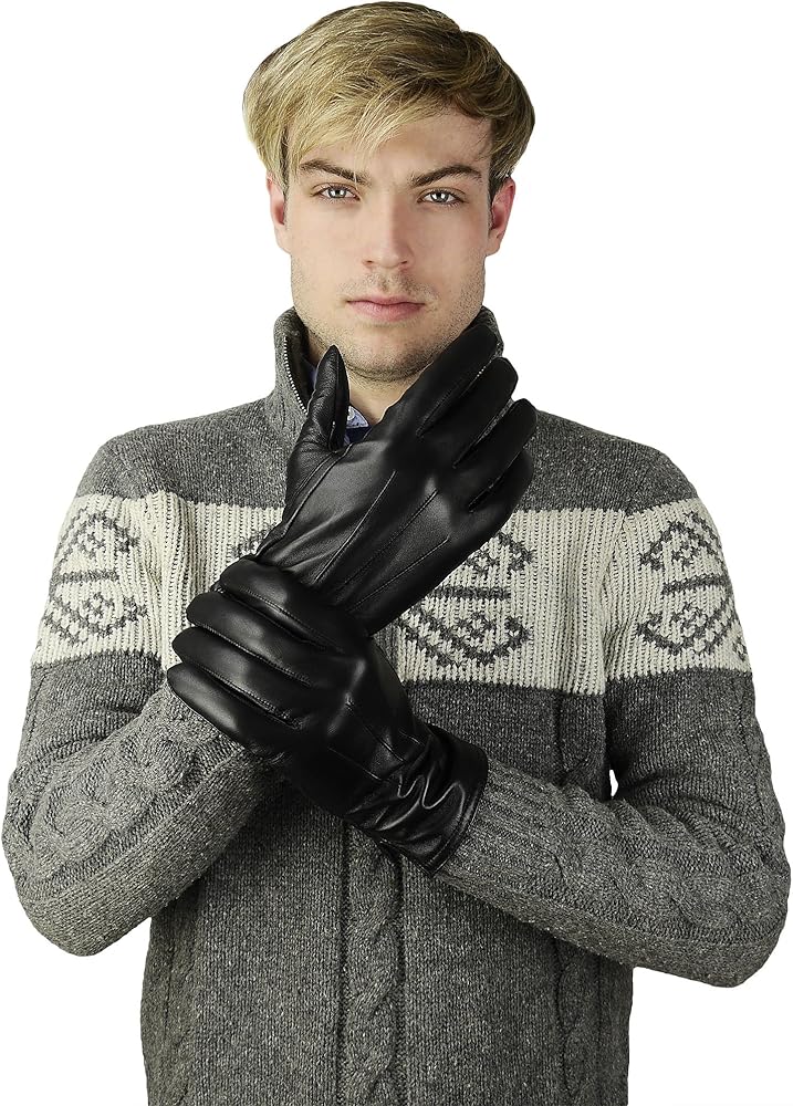 قفازات جلدية مبطنة بالكشمير من جلد الغنم الفاخر للرجال (MCA-BK-L)