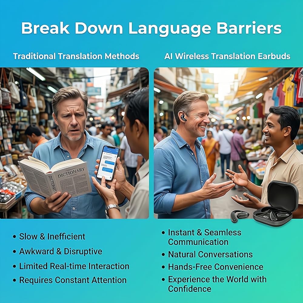 【نظام ذكي متعدد الأوضاع】مصمم لتلبية احتياجات الاتصال في العالم الحقيقي. سواء كنت في اجتماع عمل وجهًا لوجه، أو تحضر مؤتمرًا متعدد اللغات، أو تسافر إلى الخارج للعمل أو السفر أو الدراسة، فإن سماعات الأذن الخاصة بنا تتكيف على الفور. بفضل الأوضاع المخصصة للمحادثة وجهًا لوجه، والترجمة الفورية، وترجمة مكالمات الفيديو، يمكنك الاستماع والتعاون بسلاسة — دون فقدان أي كلمة. لا مزيد من التوقفات المحرجة أو الرسائل التي يساء فهمها