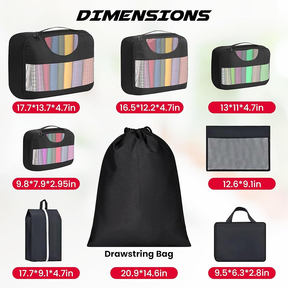 Complete Travel Set Included - Comes with anti-slip mat, six door hooks, travel bag, and eight inner packing cubes. Everything organized and ready to use right out of the box. Makes packing and unpacking simple with dedicated organization compartments for different items.