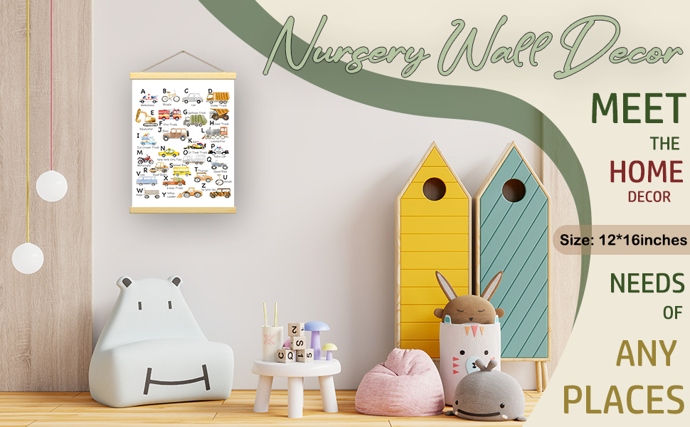 ديكور جدار الحضانة Kqfdr، إطار تعليق ملصق الحروف الأبجدية - ملصق جداري للسيارة مع إطارات خشبية، أساسيات غرفة اللعب في الفصل الدراسي، 12x16 بوصة-A05 in Kuwait