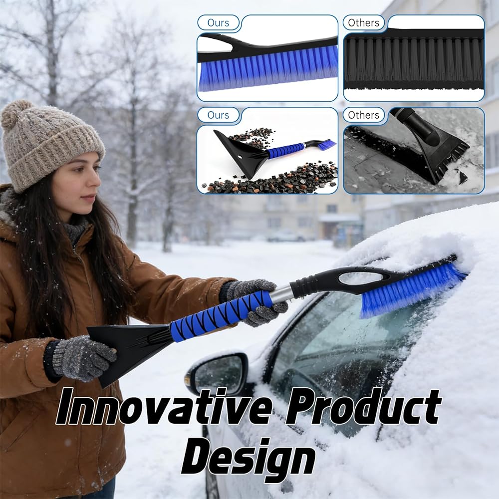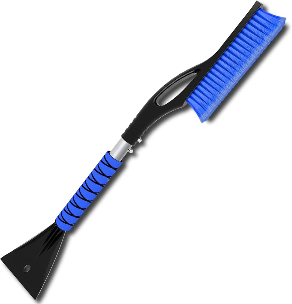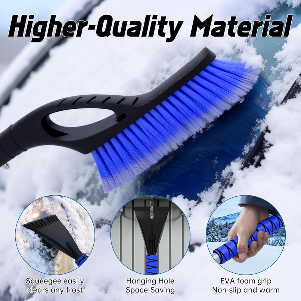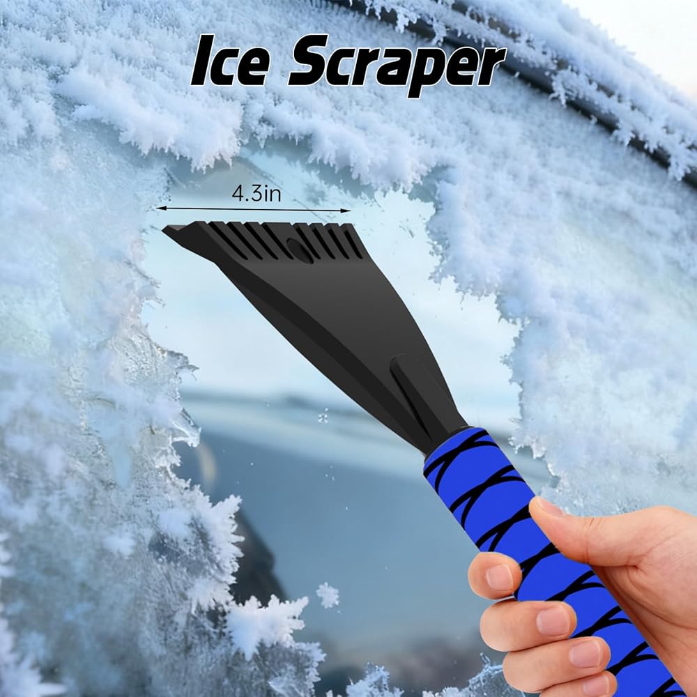 وصول واسع: مع الطول الإجمالي 27 بوصة، ورأس الفرشاة بعرض 9.5 بوصة، وكاشطة حادة 4.5 بوصة، تصل هذه الأداة إلى البقع التي يصعب تنظيفها. متوافق عالميًا مع السيارات وسيارات الدفع الرباعي والشاحنات، فهو يعمل بشكل مثالي كمنظف للزجاج الأمامي/النوافذ ومزيل للثلج والجليد.