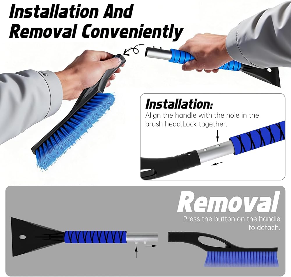 تصميم قابل للفصل: تنقسم هذه الأداة 2 في 1 إلى فرشاة ثلج مستقلة ومكشطة ثلج، مما يوفر مساحة تخزين. يمكنك تخزينها بشكل مريح في صندوق السيارة أو صندوق القفازات - معدات الطوارئ المحمولة المثالية لرحلات الطريق الشتوية والتنقلات اليومية