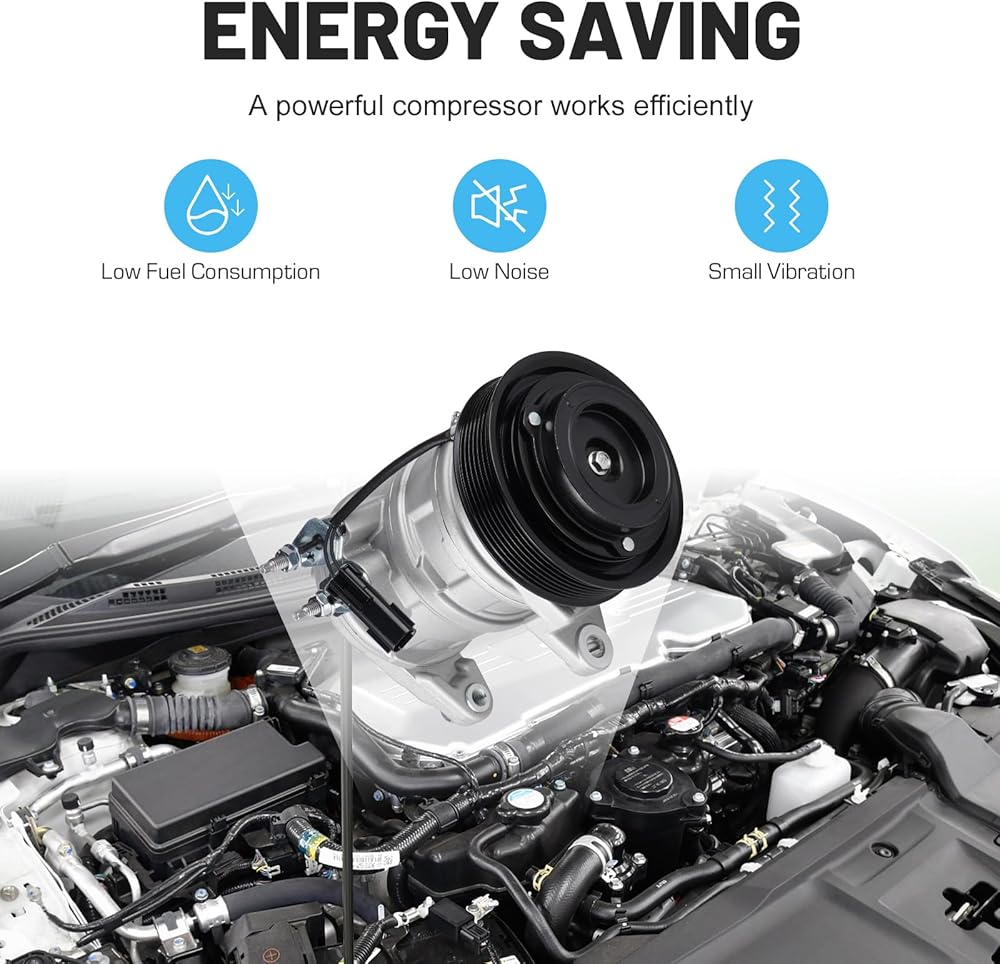 توفير الطاقة والمتانة: تجمع مجموعة ضاغط التيار المتردد لدينا بين التشغيل الموفر للطاقة والكفاءة الاستثنائية، وتتميز بانخفاض مستوى الضجيج والحد الأدنى من الاهتزازات، مما يضمن رحلة رائعة وممتعة. مصنوعة من سبائك الألومنيوم عالية القوة، وهي تضمن أداءً موثوقًا وعمر خدمة طويل وتساعد في تقليل استهلاك الوقود أثناء القيادة الثابتة والمستقرة