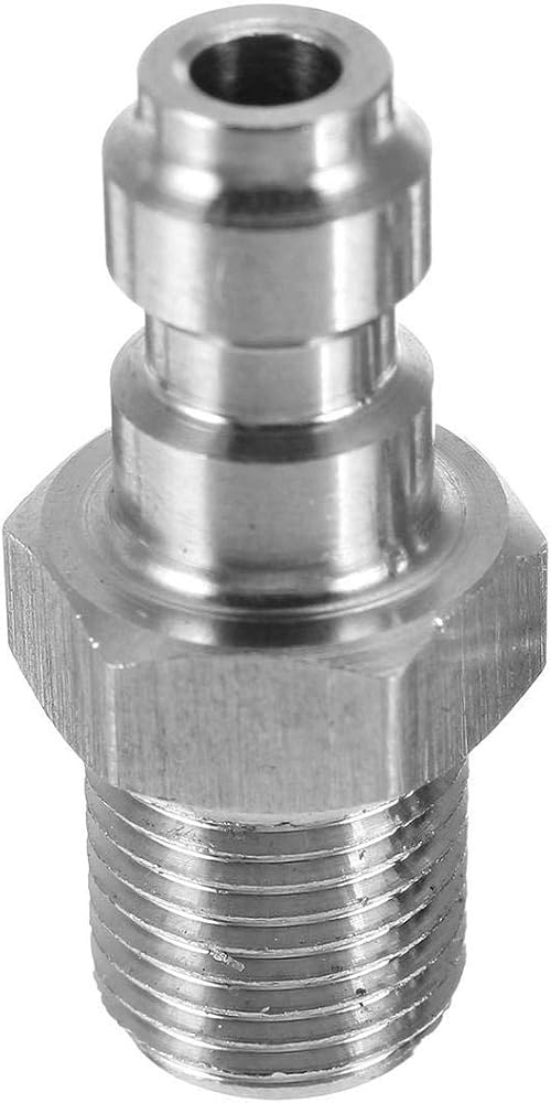 المواد: الفولاذ المقاوم للصدأ، الحجم: 27.1 ملم / 1.06 بوصة طول، قابس ذكر سريع الفصل، 1/8 بوصة NPT الخيط الداخلي أنثى على الطرف الآخر، معدل الضغط: 3000-5000 رطل لكل بوصة مربعة، مقاومة درجات الحرارة: 1000 درجة مئوية.