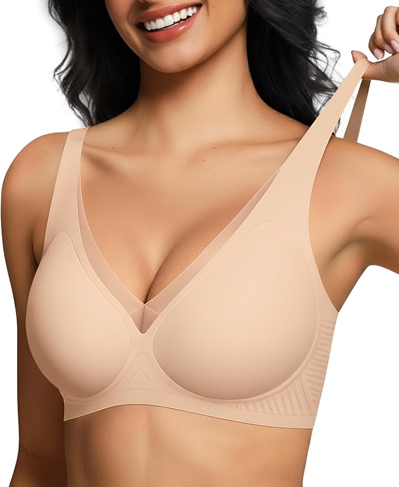 Deep-V Jelly Lift، بدون خياطة تحت التي شيرت: فتحة عميقة على شكل حرف V لاسلكية مع شبكة مثيرة تخلق مظهرًا طبيعيًا بدون أسلاك. يظل القماش الناعم ذو الطبقة الثانية غير مرئي تحت القمصان والسترات والفساتين - وهو مثالي للارتداء اليومي.