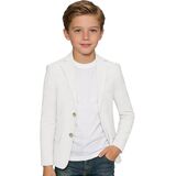 سترة للأولاد بمقاس نحيف، طية صدر مشقوقة، إغلاق عند الصدر، 1 جيب على الصدر، 1 جيب مبطن، 2 جيب بغطاء