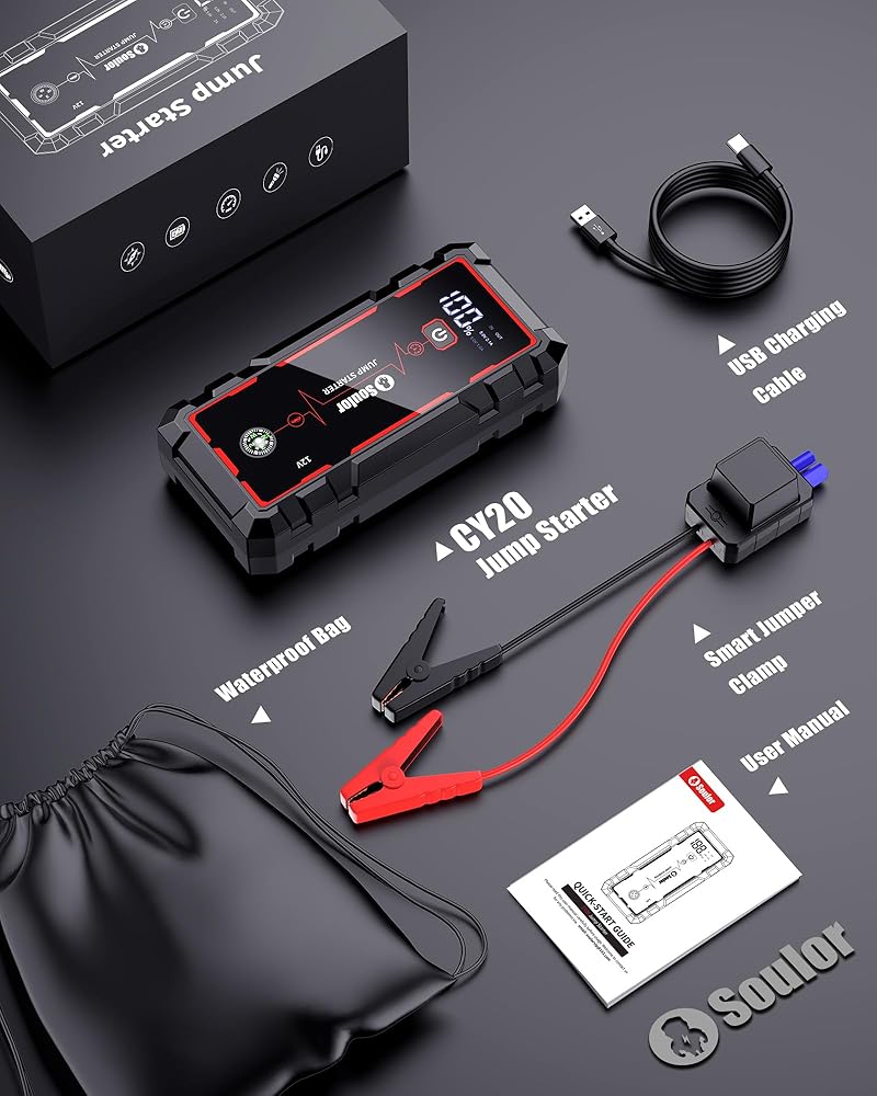 • What You Get & Reliable After-Sales Service:Package Includes: 1×5000A Car Jump Starter, 1×Smart Jump Clamp Cables, 1×USB Type-C Charging Cable, 1×User Manual, 1×Waterproof Bag. We provide 2 YEAR technical support and 24/7 online customer service. If you have any questions about the product, please feel free to contact us—we will solve your problem within 24 hours!