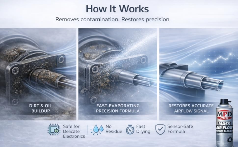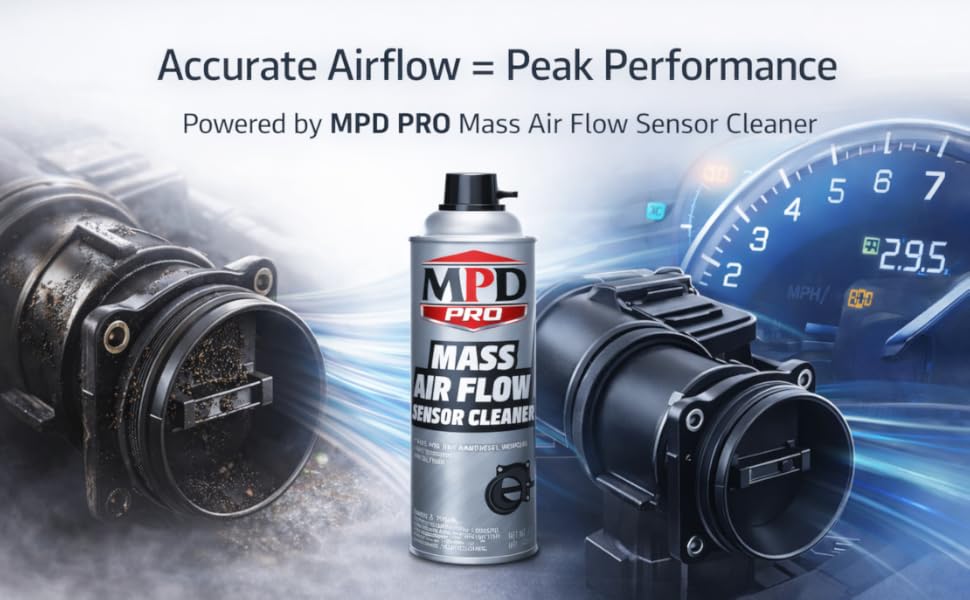 بخاخ منظف مستشعر تدفق الهواء الشامل MPD PRO - تركيبة احترافية لأجهزة استشعار MAF الحساسة | ينظف بأمان دون بقايا | يعزز أداء المحرك وكفاءة استهلاك الوقود واستجابة الخانق (الحزمة 1)
