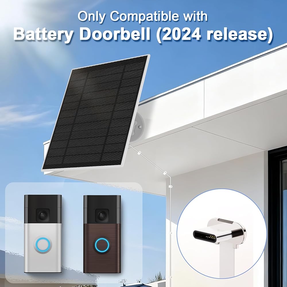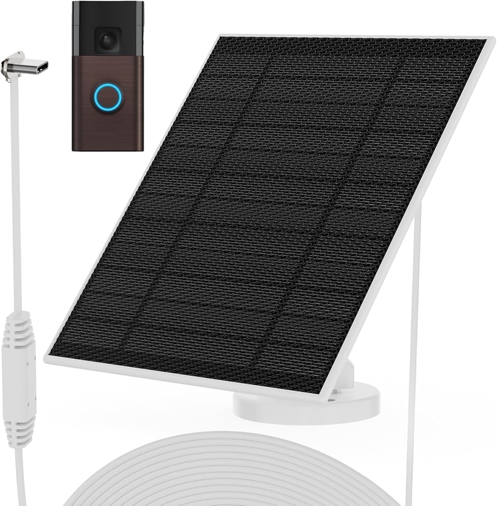 لوحة شمسية لجرس الباب الدائري (2024)، شاحن شمسي لجرس الباب الدائري بقدرة 6 وات لأجراس باب البطارية، لوحة شمسية بمنفذ شحن رفيع للغاية من النوع C مع كابل شحن بطول 13.1 قدم