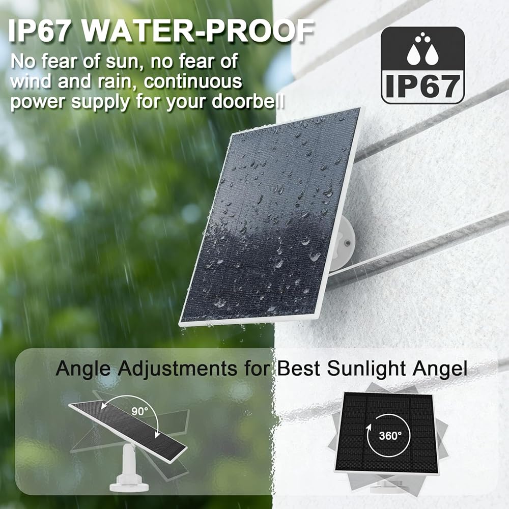 ➤ لوحة شمسية لجرس الباب المستمر: مع منظم الجهد الكهربي، طاقة شمسية مع كابل بطول 13 قدم لجرس الباب على مدار 24 ساعة، لا حاجة لتغيير البطاريات بشكل متكرر، آمنة ومريحة.