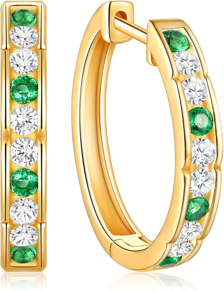 مويسانيتي الزمرد 15mm / 20mm أقراط هوب للنساء الرجال، هيبوالرجينيك 925 الفضة الاسترليني الذهب الأبيض / الذهب الأصفر الأقراط، عيد ميلاد عيد الحب مجوهرات لها / له in Kuwait