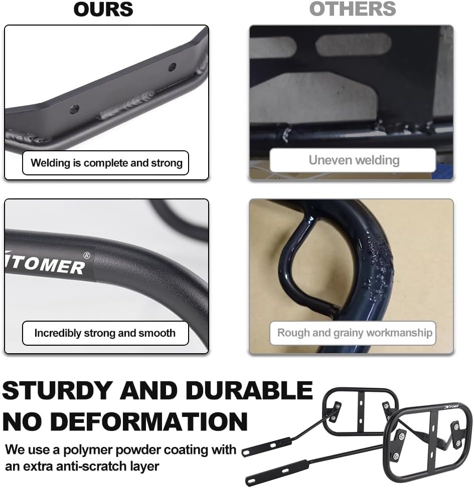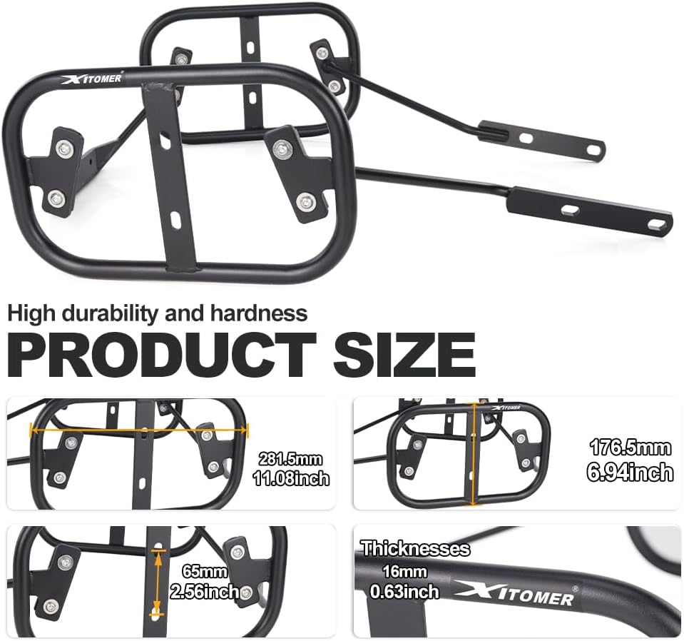 • MATERIAL: The pannier racks is made of steel with powder-coated black treatment, which has good rust resistance and is sturdy and durable