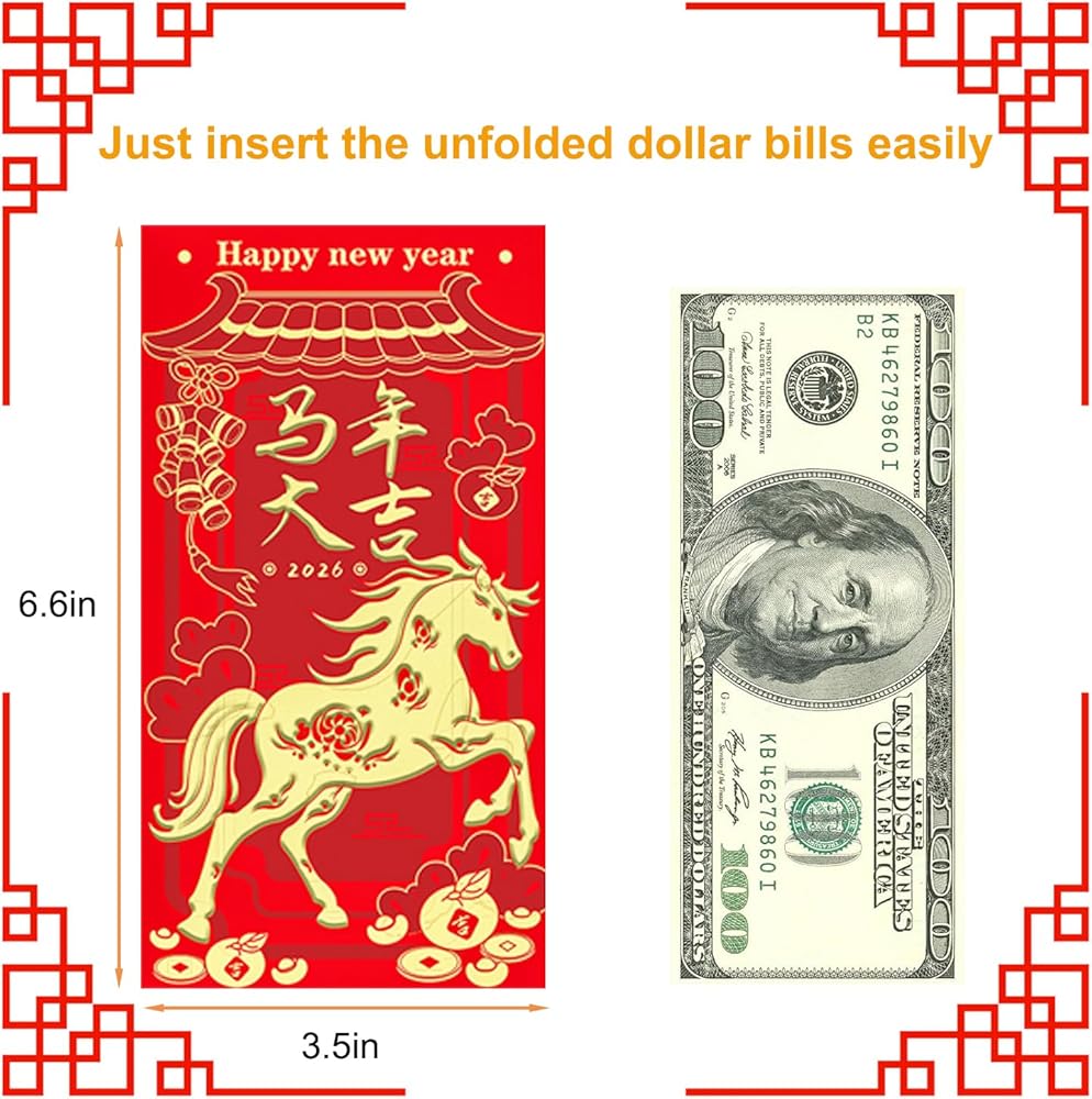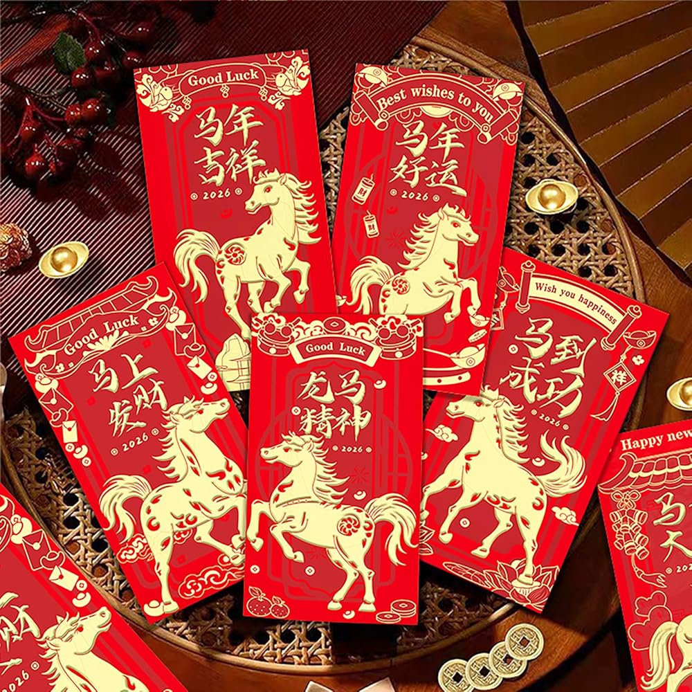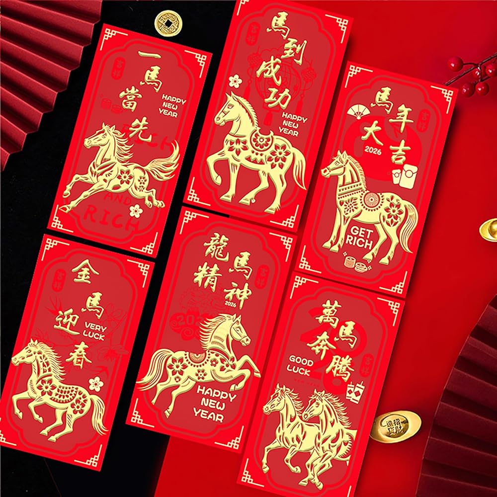 • Celebrate in Style:Our 2026 Chinese New Year red envelopes bring best wishes and good fortune,perfect for spreading joy during the lunar new year.These beautifully designed envelopes are essential Chinese New Year decorations 2026,enhancing the festive atmosphere.