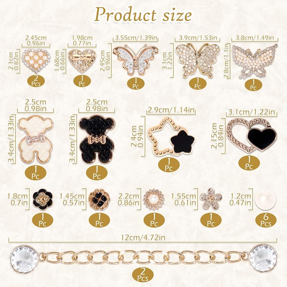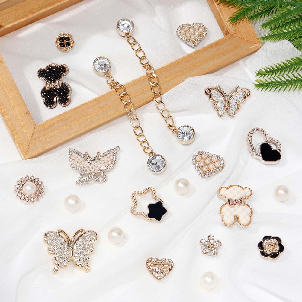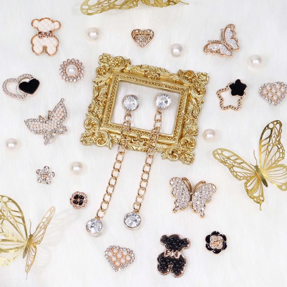 Fashionable Style: Enhance your footwear with these chic shoe charms featuring sparkling imitation gemstones, pearls, and adorable designs like butterflies, flowers, and bears. Mix and match to express your personal style and complement different occasions—whether casual or special events—making your shoes truly stand out from the crowd