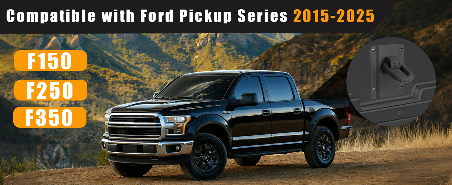 • بديل مثالي لربطات Ford OEM Tie Downs: يستبدل مباشرة مثبتات ربط Ford FL3Z-99000A64-B وFL3Z-9928408-AB. مصممة لموديلات Ford F150 وF250 وF350 ورابتور 2015-2025، مما يوفر ملاءمة دقيقة لأنظمة أسرة الشاحنات Box Link في المصنع.