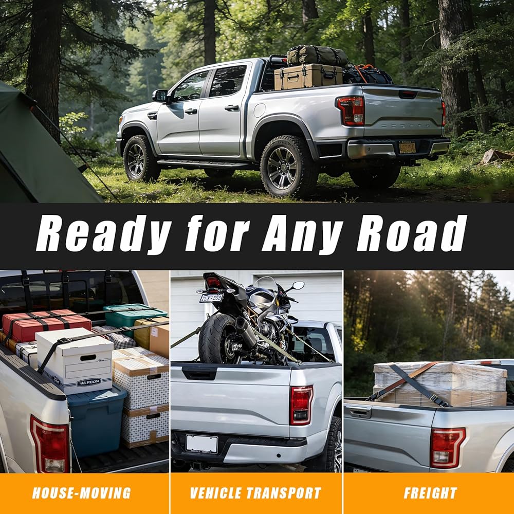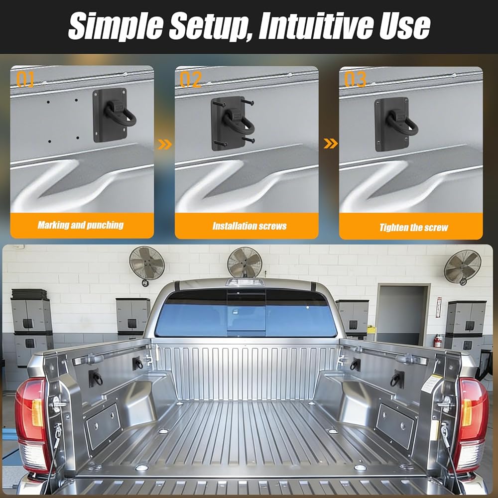 • هيكل عالي التحمل لدعم موثوق: مصنوع من الفولاذ عالي القوة مع طبقة متينة تقاوم التآكل والتآكل اليومي. يوفر نقاط ربط ثابتة لتأمين الأدوات والمعدات والأمتعة والدراجات النارية وغيرها من البضائع في سرير شاحنتك.