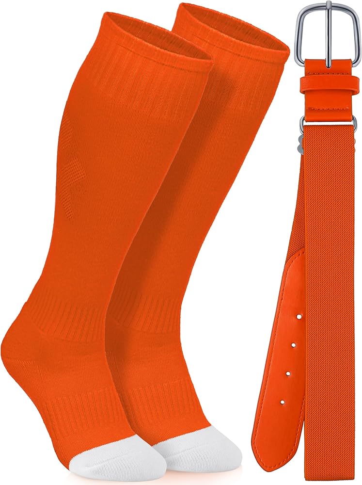 مجموعة جوارب وأحزمة البيسبول: تتضمن هذه المجموعة الكاملة زوجًا واحدًا من جوارب البيسبول المصنوعة من البوليستر الماص للرطوبة وحزام مطاطي مطابق. مصممة للبيسبول والكرة اللينة وكرة القدم والكرة الطائرة