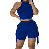 التصميم: يشتمل على قميص رياضي بدون أكمام وسروال قصير منفوش.