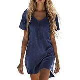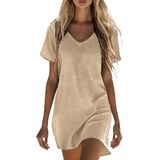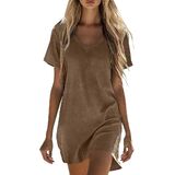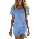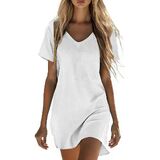 فساتين كتان للنساء فستان صيفي كاجوال بأكمام قصيرة وملابس لقضاء العطلات على الشاطئ مع جيوب in Kuwait