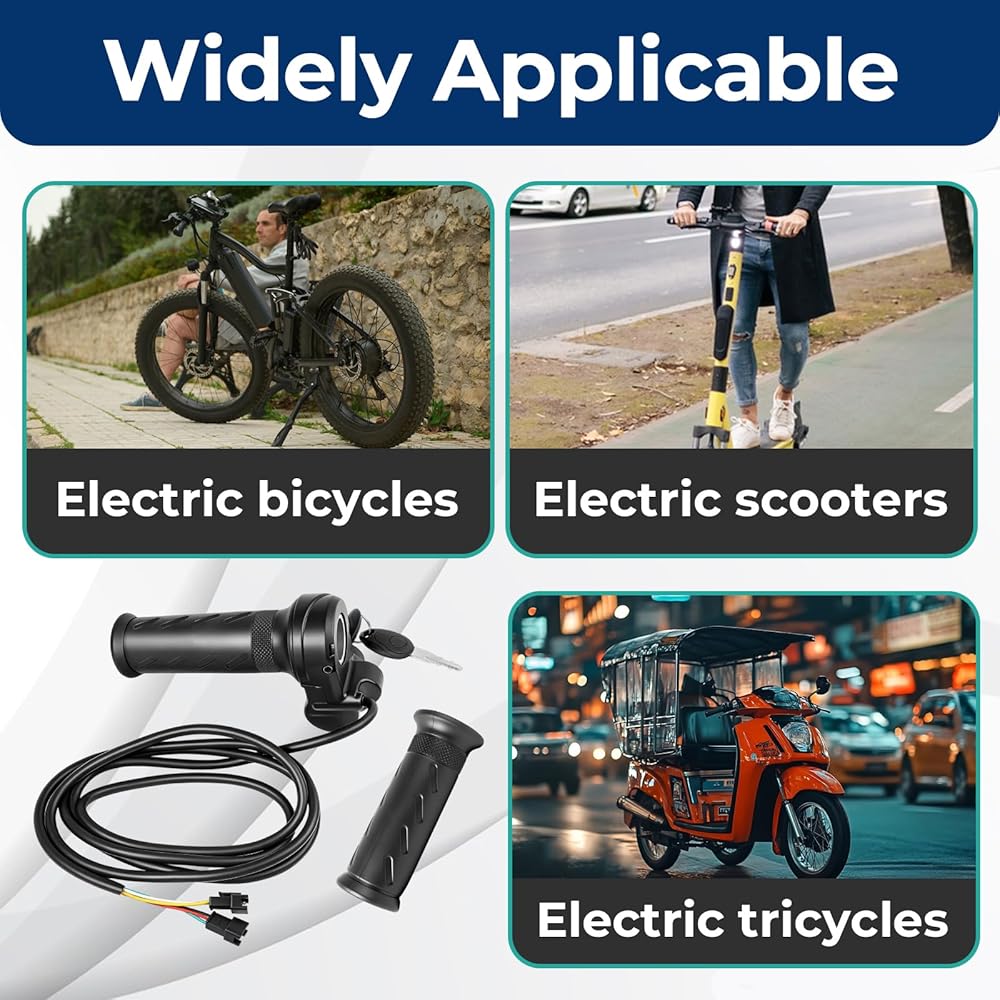 التوافق العالمي: يأتي هذا الخانق الملتوي الكامل لـ Ridstar مع مفتاحين ومتوافق مع موديلات Ridstar Q20/Q20Lite/Q20Pro/H20/H26Pro/H20. يتميز بحجم قياسي 7/8 بوصة وموصل متكامل ثلاثي الأطراف. يضمن هذا الخانق الملتوي لـ Ridstar Q20 التوافق مع معظم دراجات Ridstar الكهربائية والدراجات البخارية والدراجات ثلاثية العجلات.
