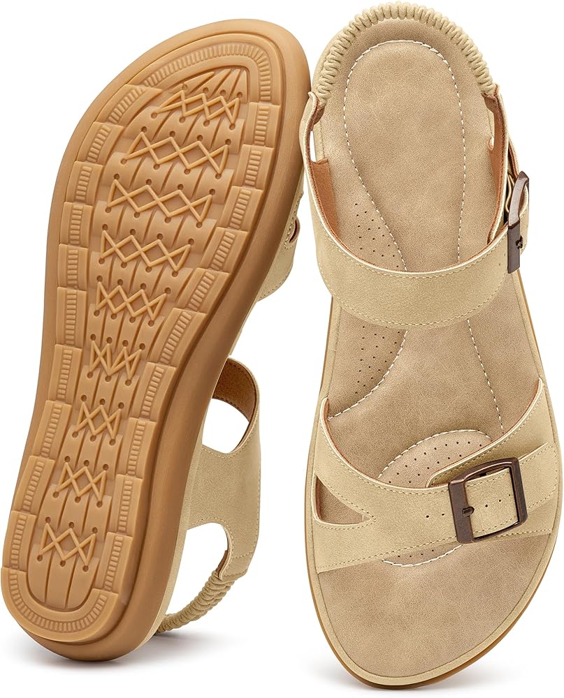 صنادل مسطحة للنساء الأنيقة: مضادة للانزلاق وقابلة للتعديل للمشي اليومي - نعل داخلي ناعم ومسامي لراحة طوال اليوم في الصيف - أزياء نسائية in Kuwait