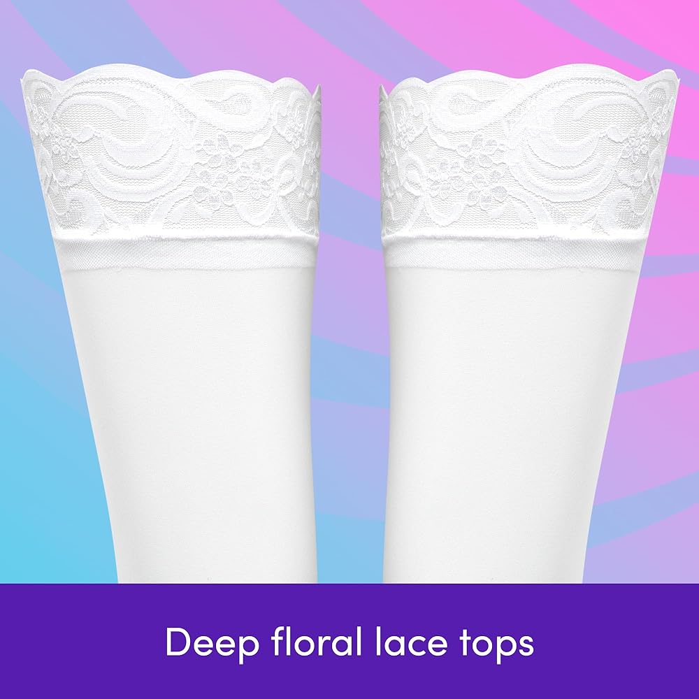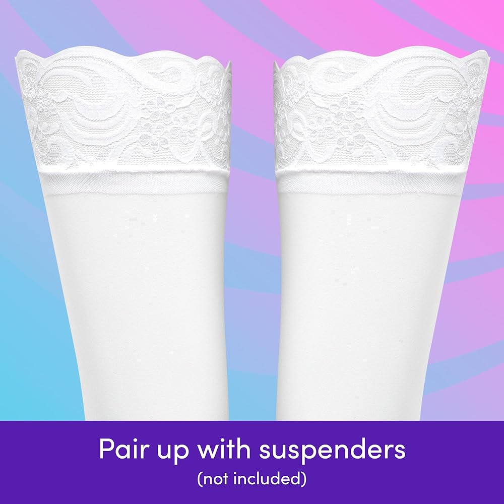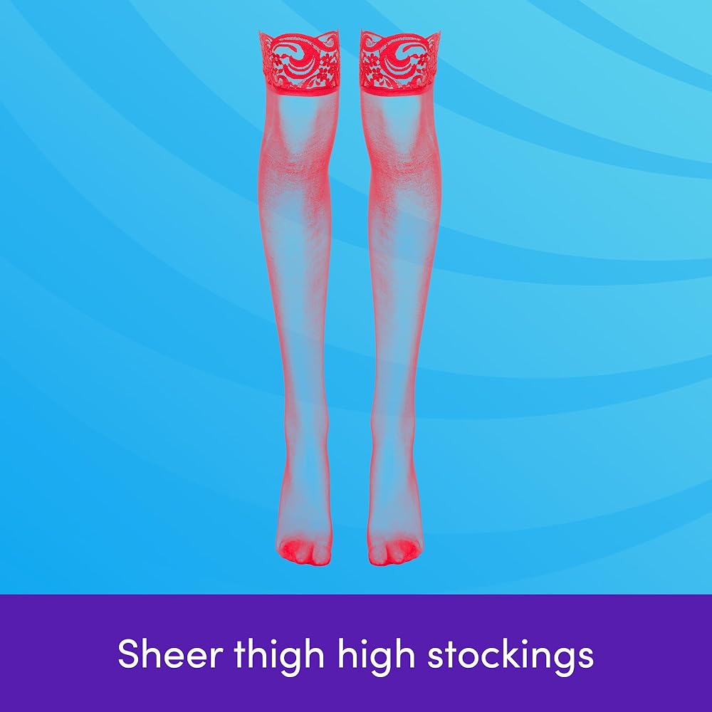 Add classic elegance to your lingerie collection with this 3-pack of thigh-high stockings, featuring one pair each in black, red, and white. Made from sheer nylon with a delicate lace top, these plus size stockings are designed to fit US sizes 14–18 comfortably. Perfect for pairing with garter belts, costumes, or romantic nights in, these thigh high stockings offer a flattering, stay-up style that combines style and sensuality. Whether you're shopping for women's hosiery, lingerie accessories, or sexy stockings for women, this bundle is a versatile and must-have addition