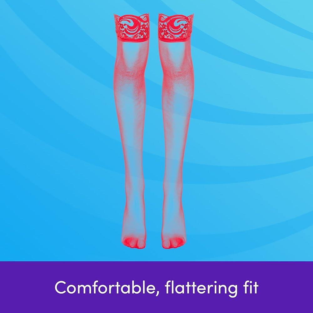 • SHEER THIGH HIGH STOCKINGS TO ACCESSORISE LINGERIE OR OUTFITS TO SHOW-STOPPING EFFECT: Say hello to pure style and seduction in an instant, with your new favorite stockings. Indulge in luscious, deep botanical lace tops that smooth over your legs in a gorgeously bold scarlet colourway for a sizzling, attention-grabbing look wherever you bare these thigh highs.