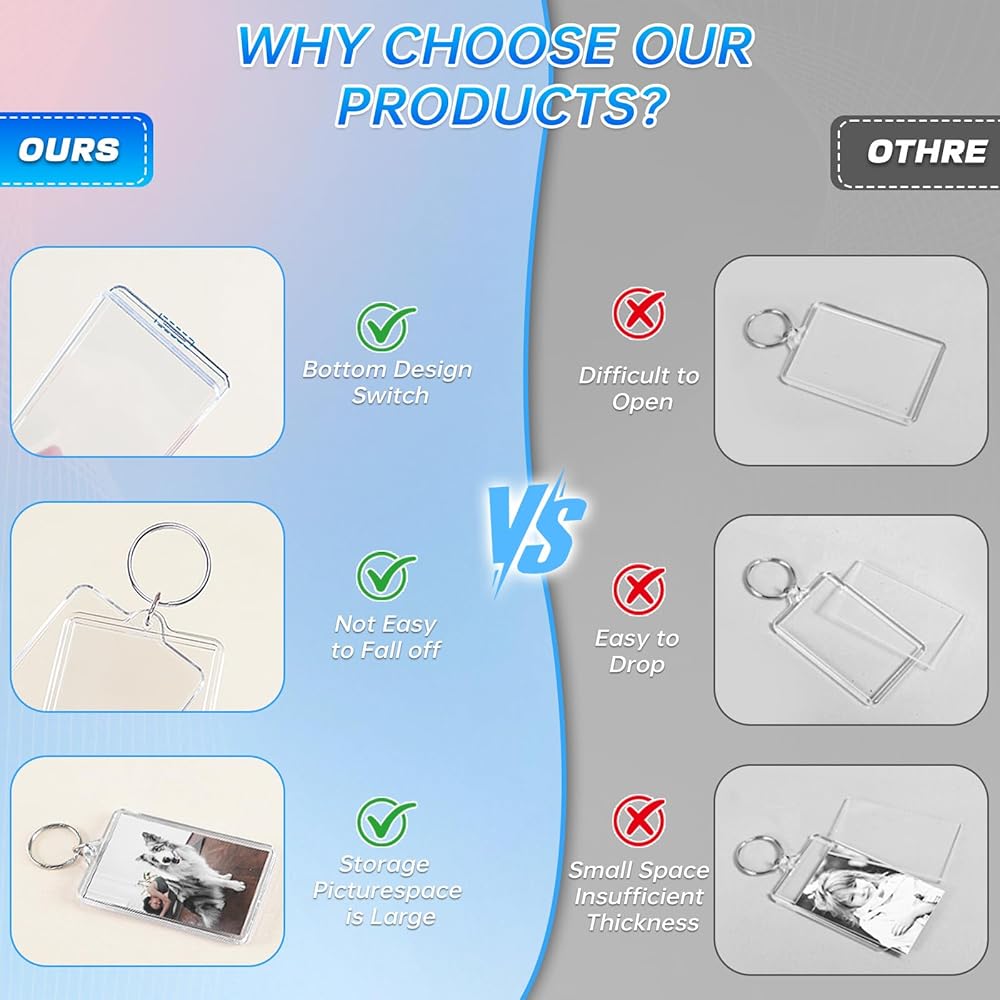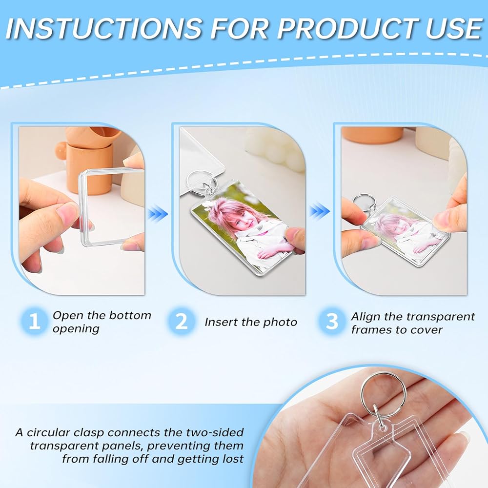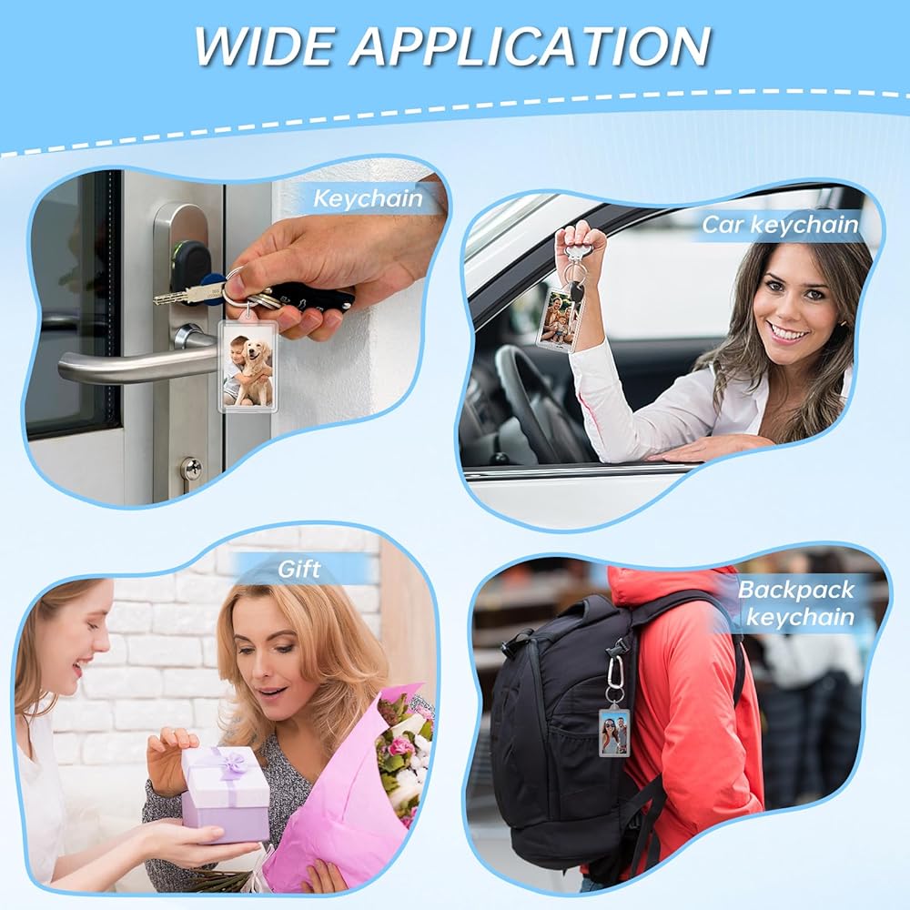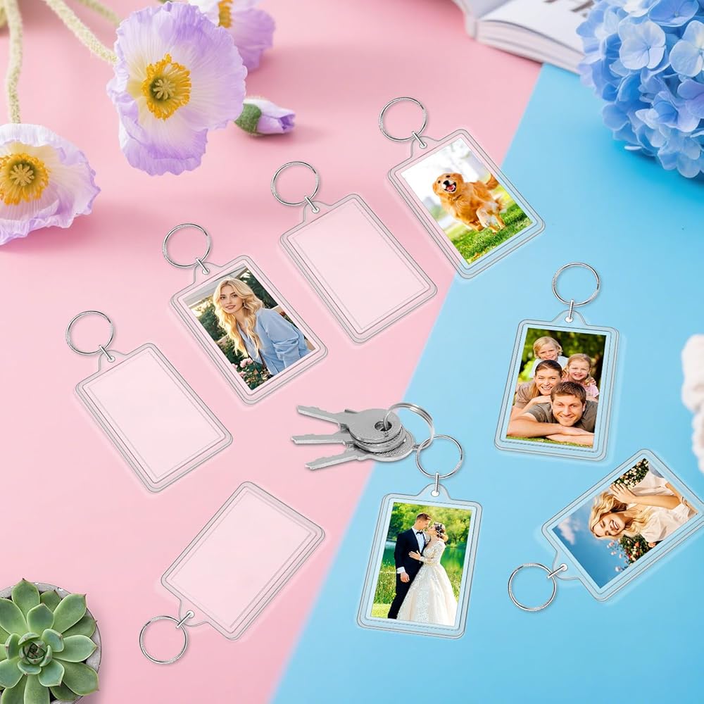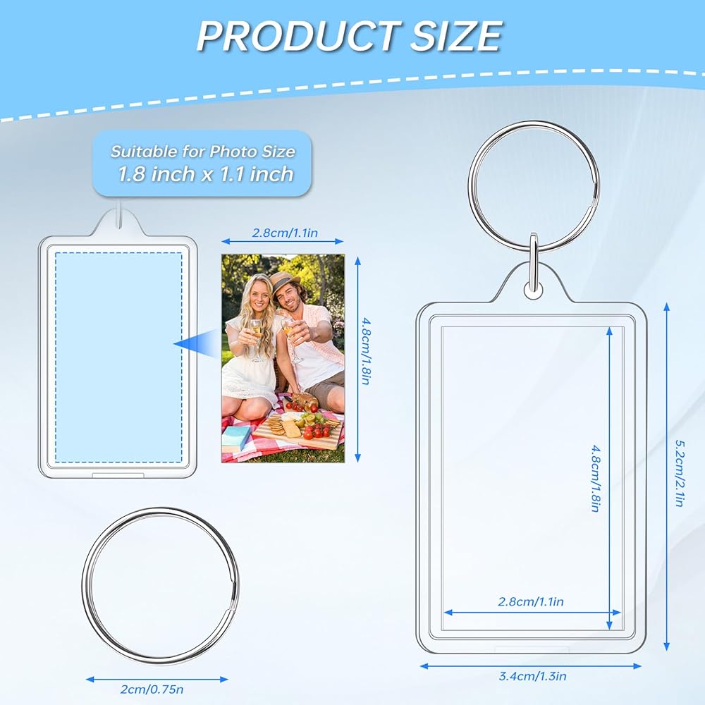 هيكل ممتاز: مصنوعة من الأكريليك المقاوم للكسر مع حلقة معدنية معززة، تتميز سلاسل المفاتيح هذه بحواف مصقولة ووضوح مقاوم للخدش للحفاظ على الذكريات حية لسنوات. تم اختباره لتحمل الاستخدام اليومي، وتبقى صورك محمية خلال المغامرات