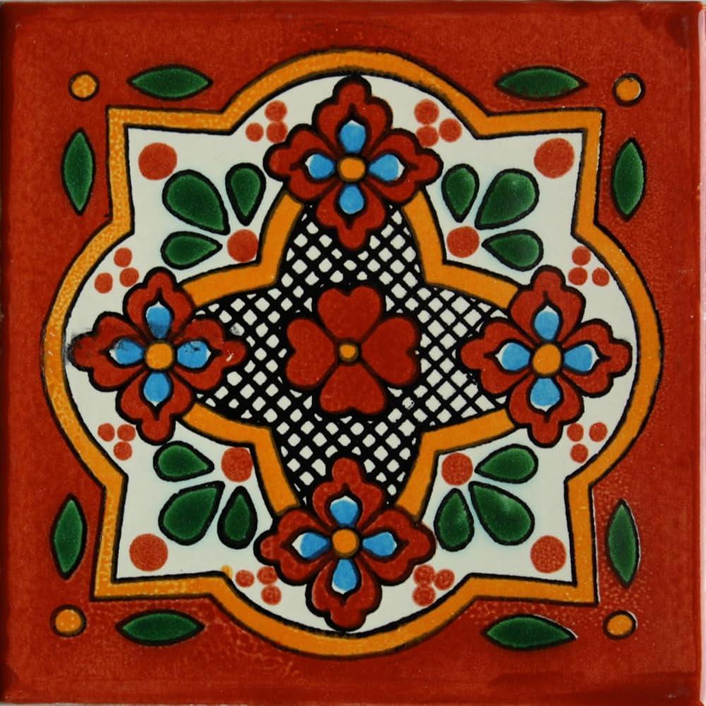 This Mexican Talavera tile has a terracotta mesh in the background with floral accents all over. It goes nicely along Saltillo floor pavers and its earthy colors combine with a wide range of other home decor accessories. If your project includes decorative colorful Mexican tile, you might want to consider this one as a good candidate. Suitable for whole area installations or just as an accent over a field tile.DISCLAIMER:All of our Talavera tiles have a heavily hand-made process involved; as such, imperfections are expected. Color variations are to be expected from batch to batch. What you see on your screen might not be exactly what you will get, this is mostly due to several factors, among others: lighting when the picture was taken, lighting in your own monitor, but mostly changes in the glazes used between batches. All these factors are beyond our control. If in doubt, we recommend you to order a sample before committing to a bigger order.