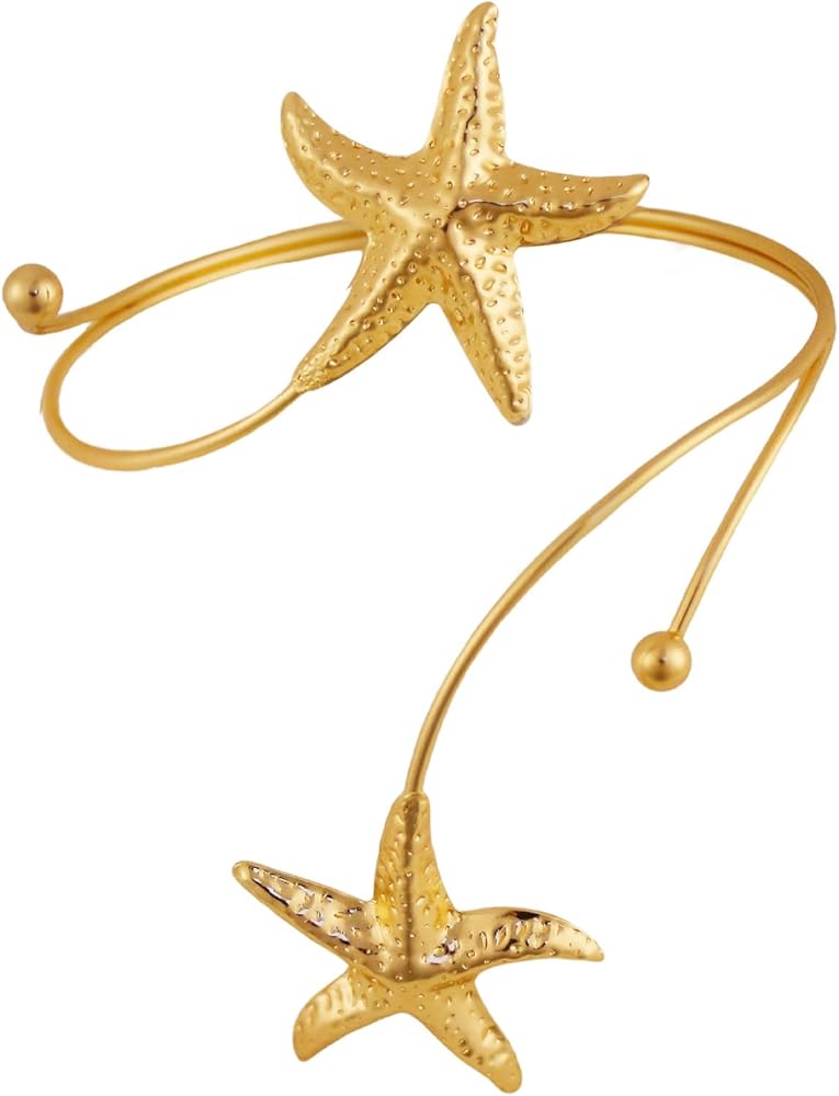 استمتع بمزيج فريد من الذوق البوهيمي والجمال المستوحى من المحيط. تتميز أساور الذراع هذه بأزهار ذهبية معقدة ونجمة بحر رقيقة، مما يخلق قطعة جذابة تجسد الأناقة المفعمة بالحيوية.