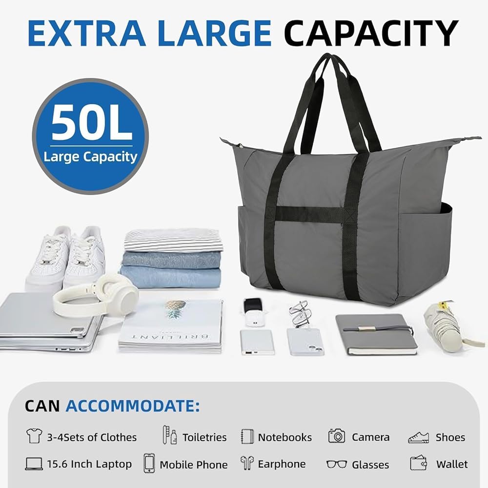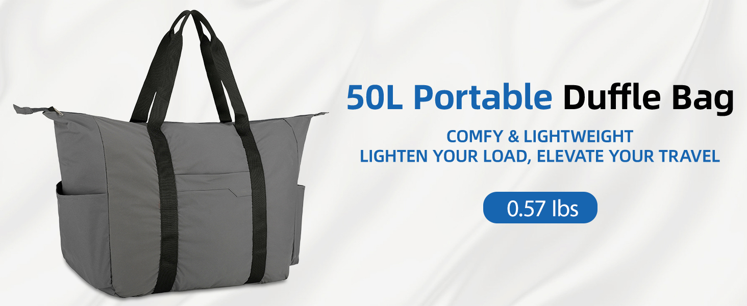 حقيبة دفل قابلة للطي سعة 50 لتر، حقيبة سفر خفيفة الوزن ومقاومة للتمزق للرجال والنساء، رمادي