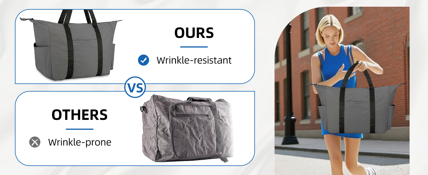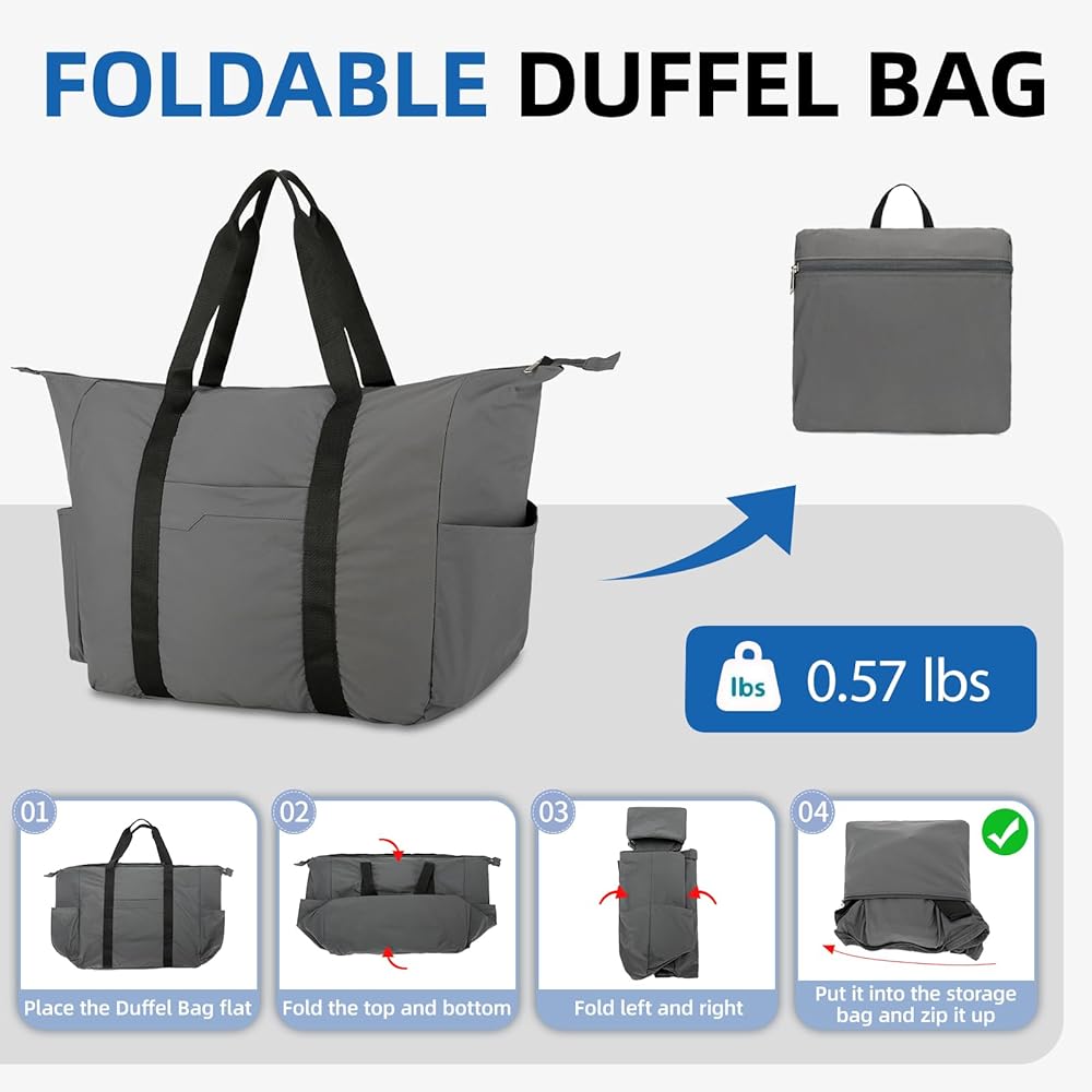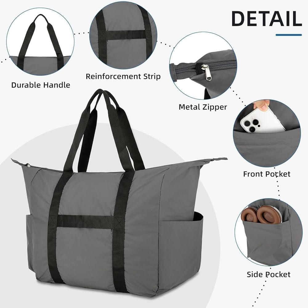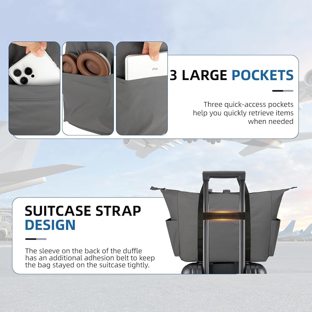 • ميزات ملائمة للسفر - تم تصميم حقيبة اليد القابلة للطي هذه مع وضع المسافر العصري في الاعتبار، وهي تناسب بسلاسة مقابض حقيبة السفر لسهولة الحركة. كما تمت الموافقة عليها كحقيبة يد، لذا يمكنك أخذها مباشرة على متن الطائرة أثناء سفرك. لا مزيد من الانتظار عند استلام الأمتعة - ستظل رحلتك مبسطة وخالية من التوتر