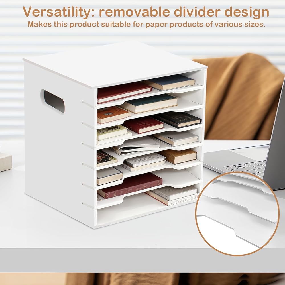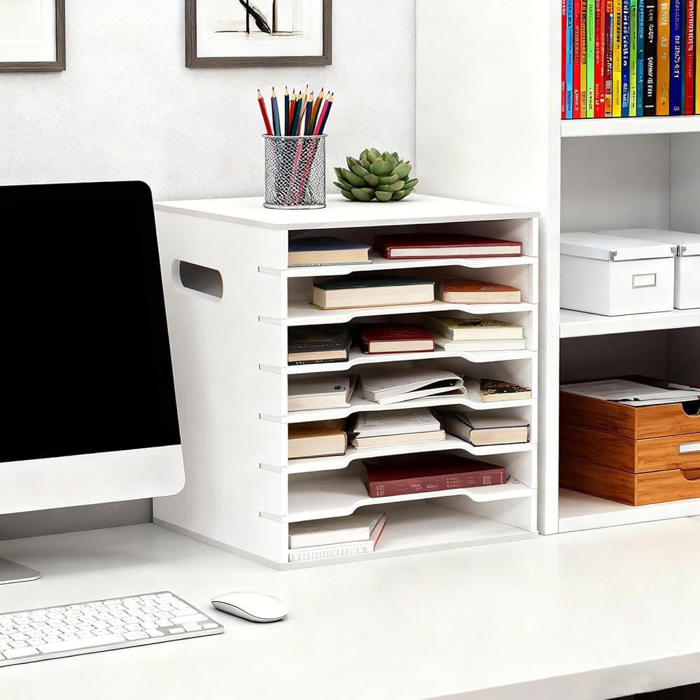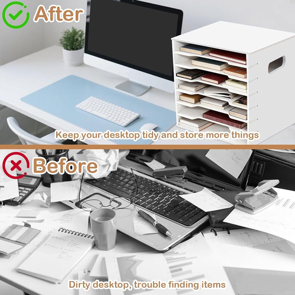 【Multi-Scene Adaptability】This 7-tier paper storage is highly versatile, seamlessly adapting to various scenarios such as office, study, and home, becoming a cross-scenario "storage helper." In the office, it can serve as a "file manager" for your workstation, storing contracts, meeting minutes, and other office documents, as well as small office supplies like sticky notes. Furthermore, its minimalist design blends seamlessly into spaces with different decorating styles, being both practical and aesthetically pleasing.