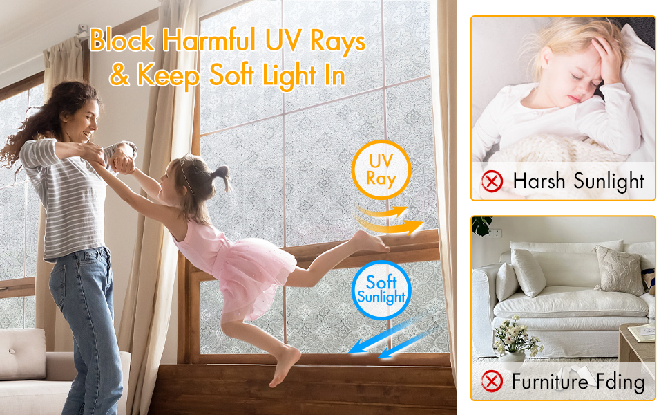حجب أشعة الشمس القوية: مصنوع من مواد PVC وPET الممتازة، يقوم غشاء النافذة بتصفية وهج أشعة الشمس المبهرة القوية بشكل فعال، ويحجب 84% من الأشعة فوق البنفسجية فئة A و99% من الأشعة فوق البنفسجية فئة B، ويحمي بشرتك وأثاث منزلك من التعرض المباشر لأشعة الشمس، مما يجعل منزلك مريحًا للعيش فيه.