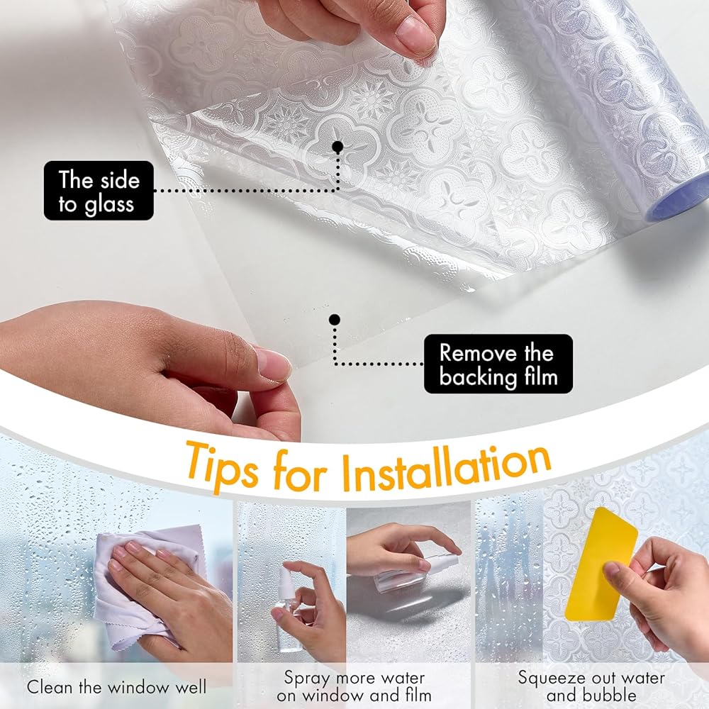 سهل وسريع الاستخدام: الغشاء الزجاجي مثالي لأي مشروع إبداعي لتزيين المنزل بأقل تكلفة؛ إنه مريح للغاية للتركيب بخطوات قليلة فقط: قم بقياس الغشاء وقطعه، وتنظيف السطح المستهدف، وإزالة الغشاء الخلفي، ثم تثبيت غشاء النافذة بالماء الكافي.