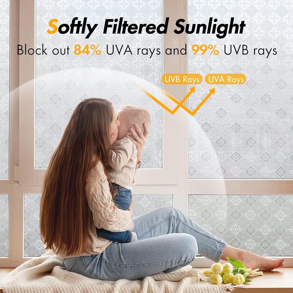 خصوصية محمية، حياة آمنة: يوفر غشاء النافذة شبه الخاص طريقة سهلة لإضافة خصوصية جزئية لمساحتك الشخصية مع السماح بدخول الضوء الطبيعي الناعم، ويوصى بشدة باستخدامه على نوافذ أو أبواب المنزل/المطبخ/المكتب، ولا يُنصح باستخدامه في الحمام.