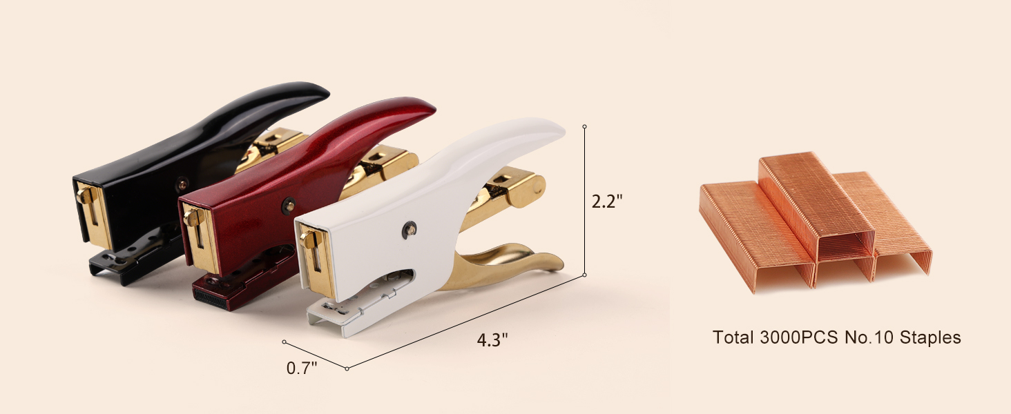 • دباسة ذات زردية تحتوي على 3000 دبوس ذهبي وردي فاخر - تحتوي هذه الدباسة المحمولة باليد المزودة بدباسات على 3000 قطعة من الذهب الوردي رقم 10 (3 عبوات من 1000 قطعة)، لا حاجة إلى عمليات شراء إضافية.
