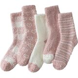 ناعمة ودافئة: الجوارب النسائية المزغبة مصنوعة من مزيج من 95% بوليستر و5% ألياف لدنة. ناعم ومريح وجيد التهوية، ولا يسبب الحكة. الجزء الداخلي من المخمل المرجاني فائق النعومة والخارجي من القطيفة يبقي قدميك دافئتين ومرتاحتين في الشتاء البارد