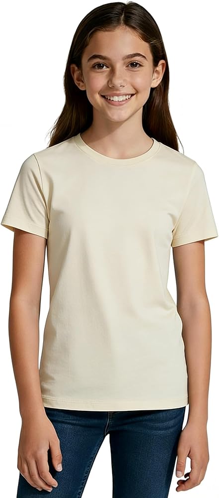 تي شيرتات بناتي بأكمام قصيرة للأطفال، قمصان صيفية قطنية بياقة دائرية، تي شيرتات أساسية للأطفال من عمر 3 إلى 14 عامًا in Kuwait