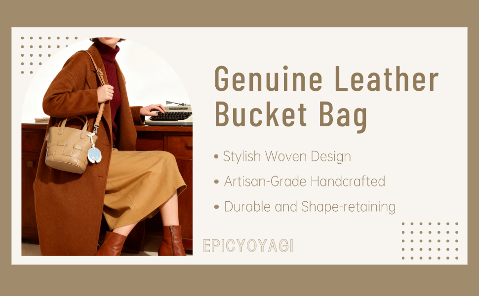 Elevate your everyday style with this women's woven genuine cow leather bucket bag. Made of high-quality cowhide and lined with soft fabric, it combines durability, comfort, and fashion for the modern woman.
