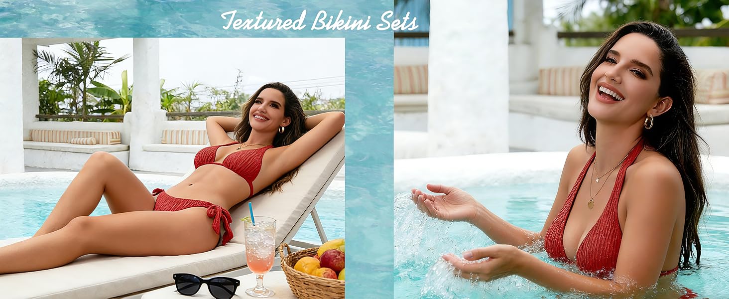الأحجام: مجموعة البكيني المكونة من قطعتين مطابقة للحجم. يمكنك اختياره وفقًا للمقاس الذي ترتديه عادةً أو الرجوع إلى جدول المقاسات الخاص بنا. مجموعة ملابس سباحة بيكيني بسيطة، مناسبة للنساء من معظم الأعمار، يمكن ارتداؤها كملابس الأم وأنا، أو ملابس الأخت، أو ملابس أفضل صديق.