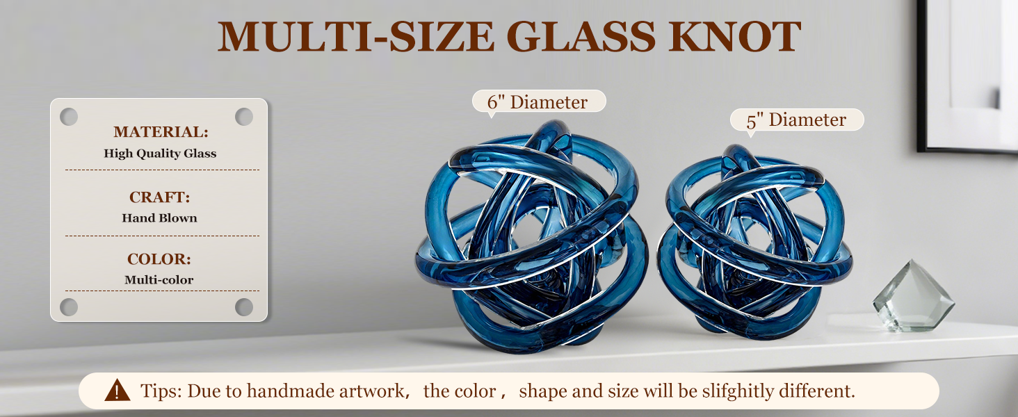 ديكور متعدد الاستخدامات: عقدة الحبل الزجاجي هذه أكثر من مجرد قطعة زخرفية - إنها لمسة متعددة الاستخدامات تتكيف مع أي مكان. ضعها على طاولة القهوة لرفع مستوى غرفة معيشتك، واستخدم كرة معقودة منحوتة مزخرفة كقطعة مركزية لطاولة طعامك، أو اعرضها على رف في مكتبك لإلهام الإبداع.