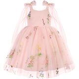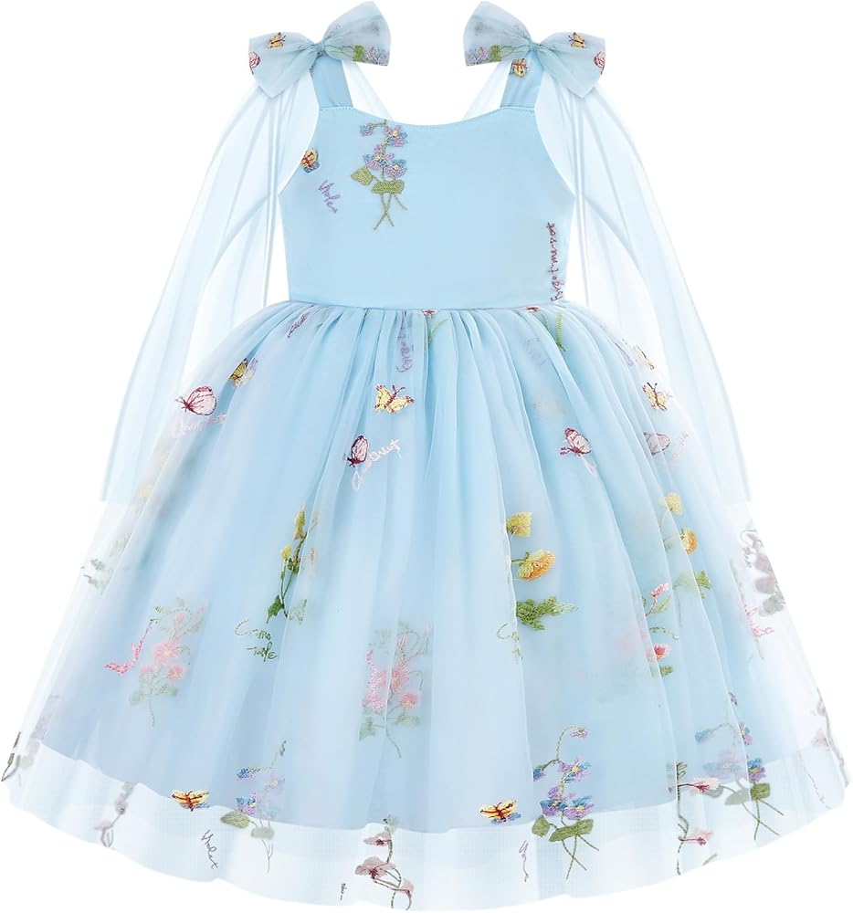خامة فستان التول للأطفال الصغار: فساتين خيالية من التل بدون أكمام مع شبكة ناعمة، وبطانة قطنية، وتفاصيل على الكتف بشريط على شكل فيونكة لمظهر الأميرة.