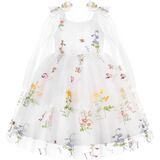 تصميم فستان للفتيات الصغيرات: يتميز هذا الفستان الزهري للفتيات الصغيرات بتنورة من طبقتين من التول مع شبكة مطرزة في الأعلى وطبقة صلبة في الأسفل للحصول على مظهر أكمل.