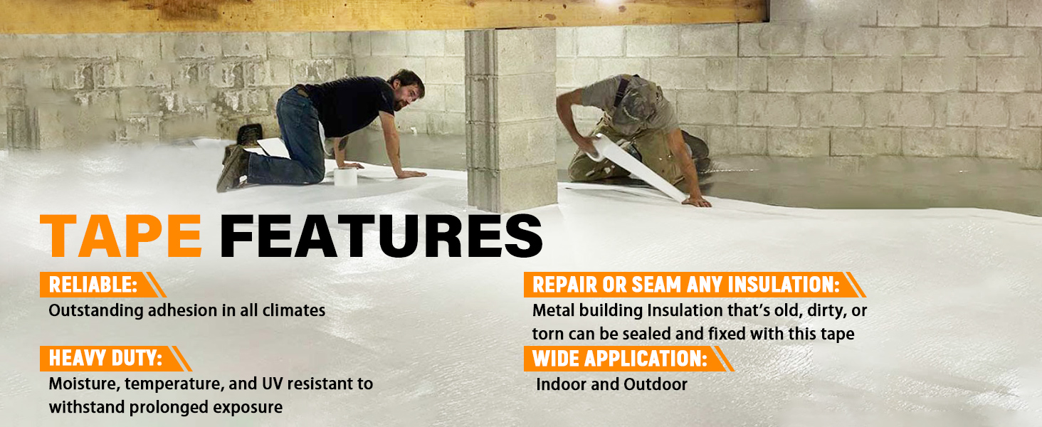 إصلاح أو خياطة أي عزل: شريط التماس حاجز البخار الأبيض الخاص بنا مقاوم للرطوبة ودرجة الحرارة والأشعة فوق البنفسجية، ليتحمل التعرض لفترات طويلة لأشعة الشمس دون إتلاف الشريط أو تغيير لونه.