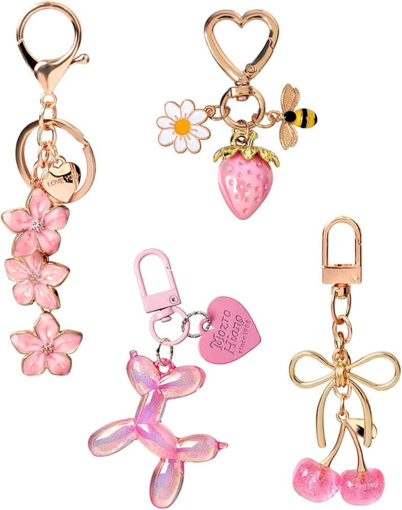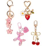مجموعة حليات محفظة لطيفة - تتضمن العبوة: حلية حقيبة الكرز *1، سلسلة مفاتيح حقيبة الفراولة *1، سلسلة مفاتيح حلية الزهور *1، سلسلة مفاتيح بالون الكلب *1
